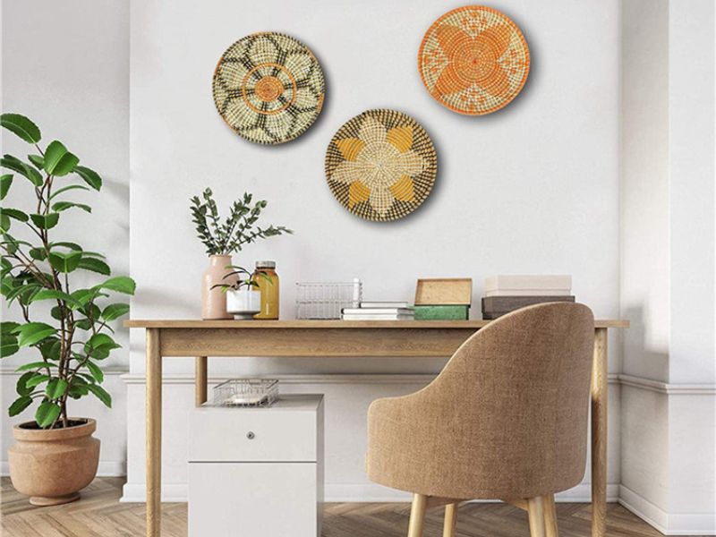 Изящное настенное искусство из корзин с чистыми линиями и плоским плетением подходит для интерьеров в скандинавском стиле. Эти сдержанные элементы добавляют тонкую элегантность современным, минималистичным стенам.